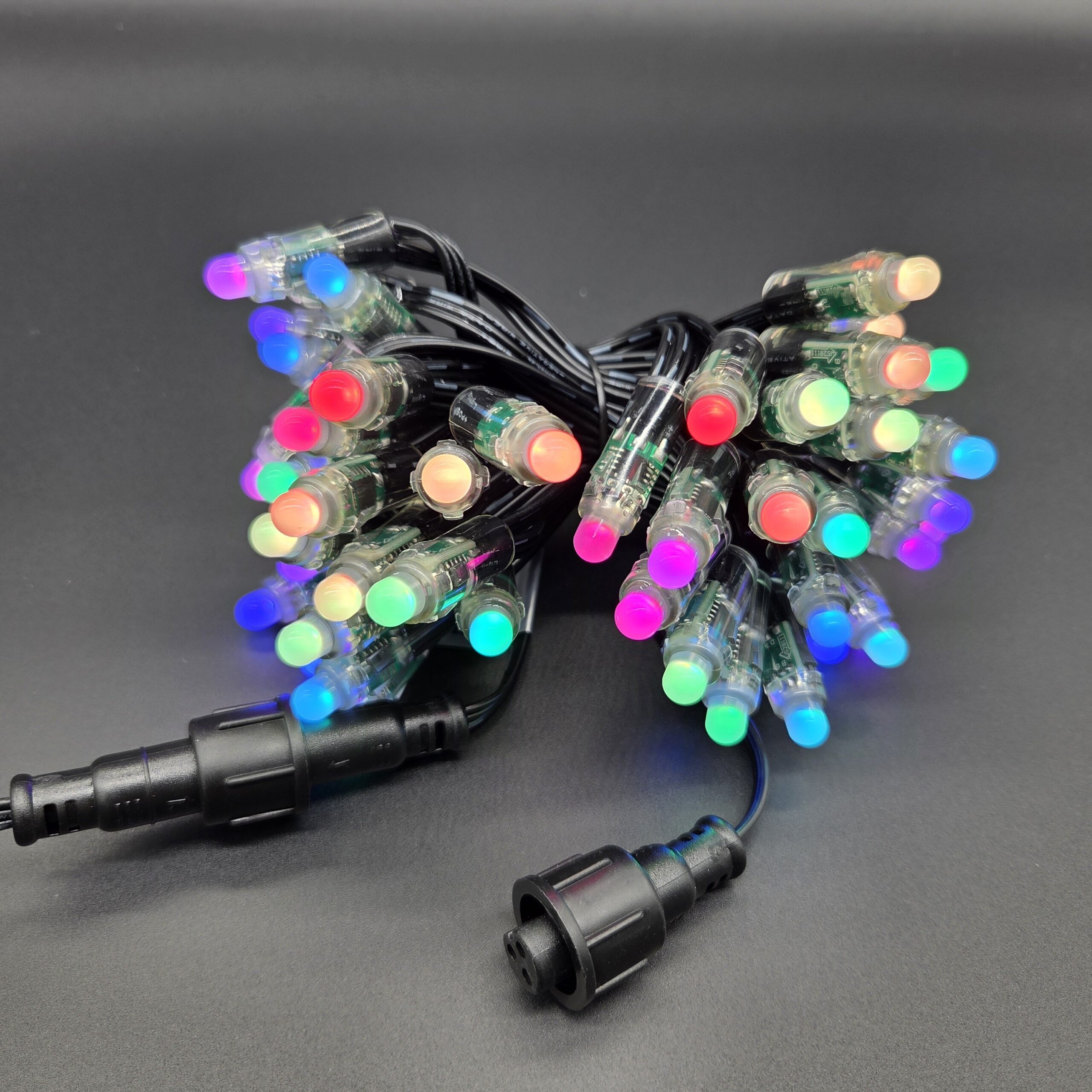 Skab et imponerende lysshow til din festlige lejlighed med vores kæde af højkvalitets pixels. Hver pixel er udstyret med en kraftfuld WS2811 chip, der giver individuel adressering af hver pixel og mulighed for mere end 16 millioner forskellige farver.