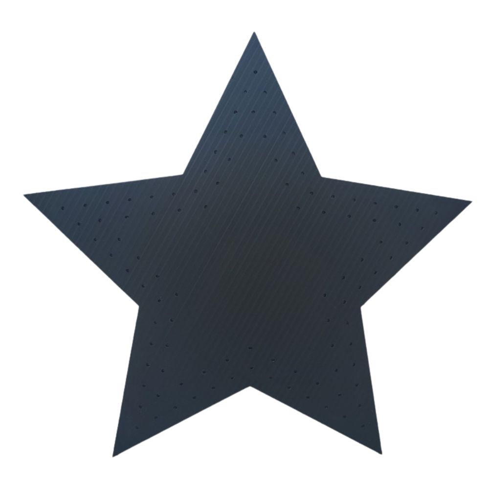 Stjernen er 57 cm i diameter og leveres i sort 10 mm correx, som sikrer stabilitet og et professionelt look.